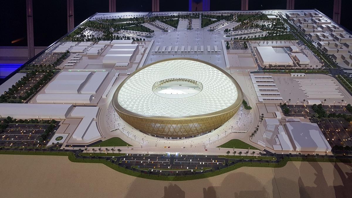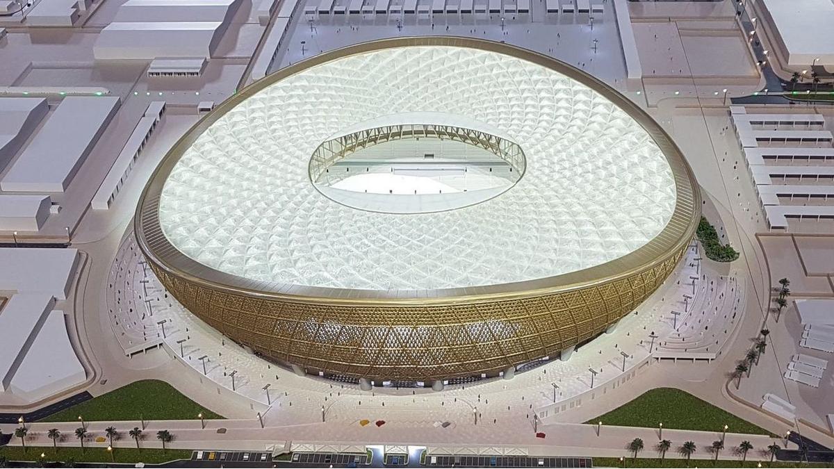 Fusion d'une coupe de date et d'une lanterne, le stade de Lusail symbolise l'hospitalité du Qatar.