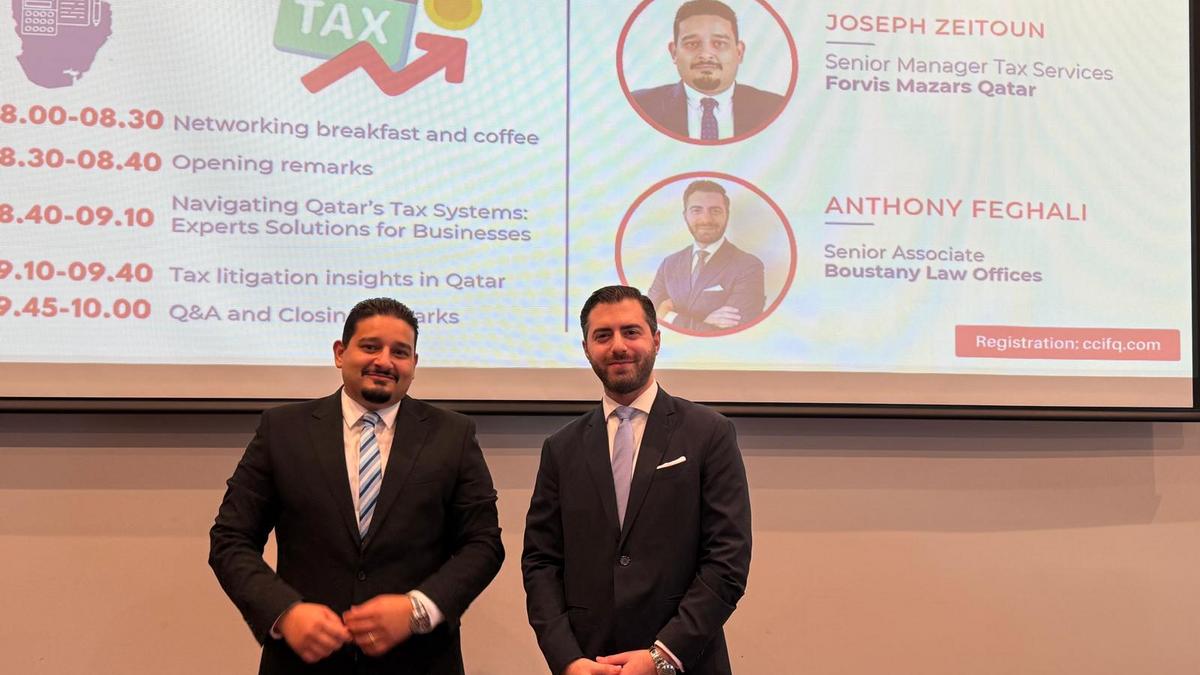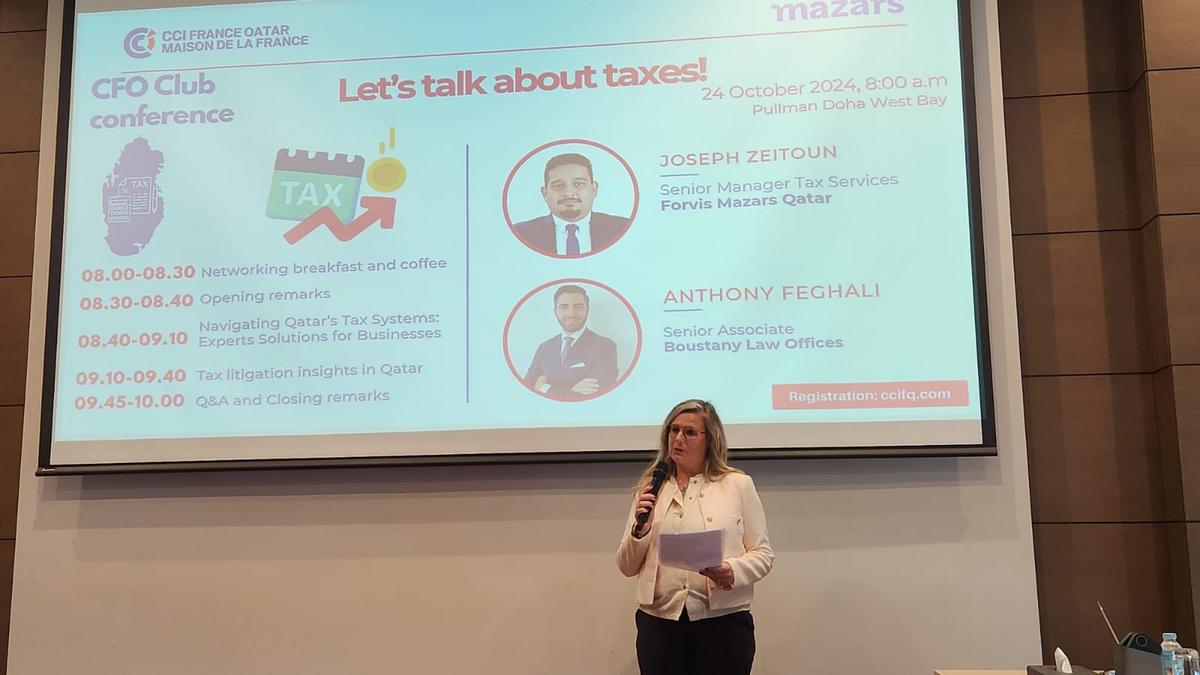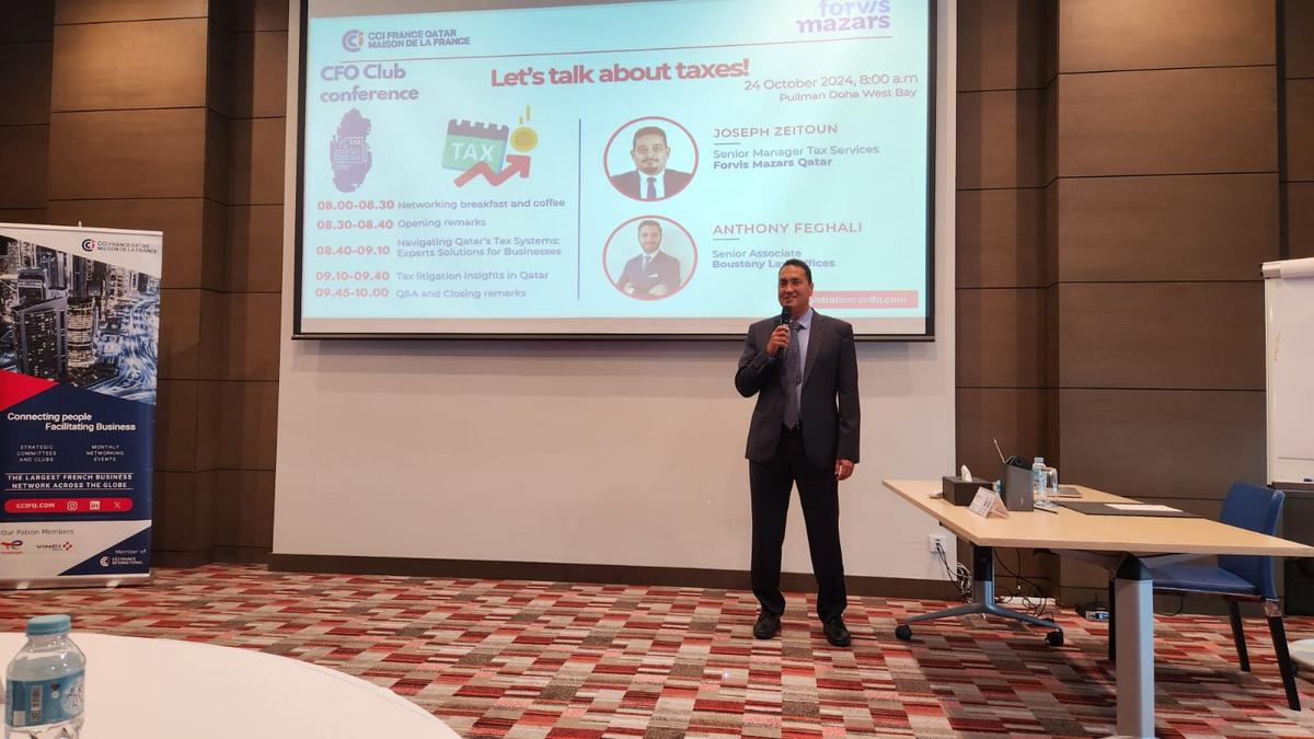Joseph Zeitoun, Senior Manager of Tax Services chez Forvis Mazars, a présenté les systèmes fiscaux du Qatar, tout en offrant une feuille de route pour une gestion optimale de ces systèmes.