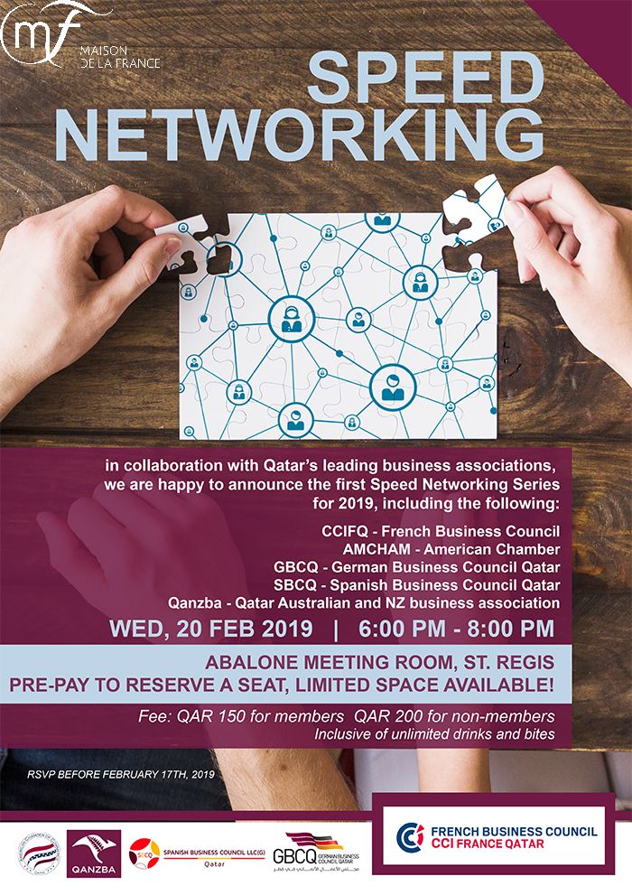 Co-organised by QANZBA, CCIFQ, AmCham, GBCQ and SBCQ, our first Speed Networking session was a great success! One minute each to present yourself and your company. You're interested? See you at the cocktail after! Not interested ? Just wait a few seconds for the bell to call for the change of seats!