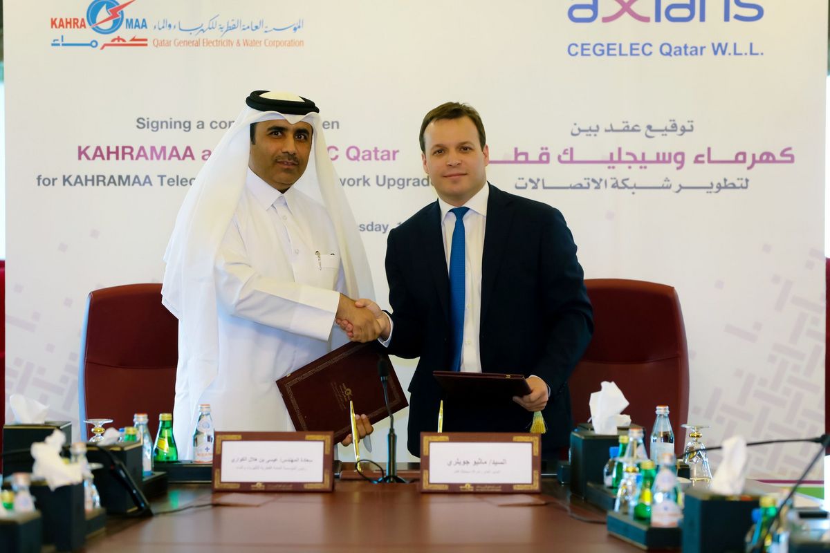 The contract for Telecommunication networks’ upgradation was signed by Essa bin Hilal Al Kuwari, Kahramaa’s President and Mathieu Guillerey, the Managing Director of CEGELEC Qatar W.L.L., a company of VINCI Energies Group. AXIANS is the brand of VINCI Energies dedicated to Informations and Communications Technologies.