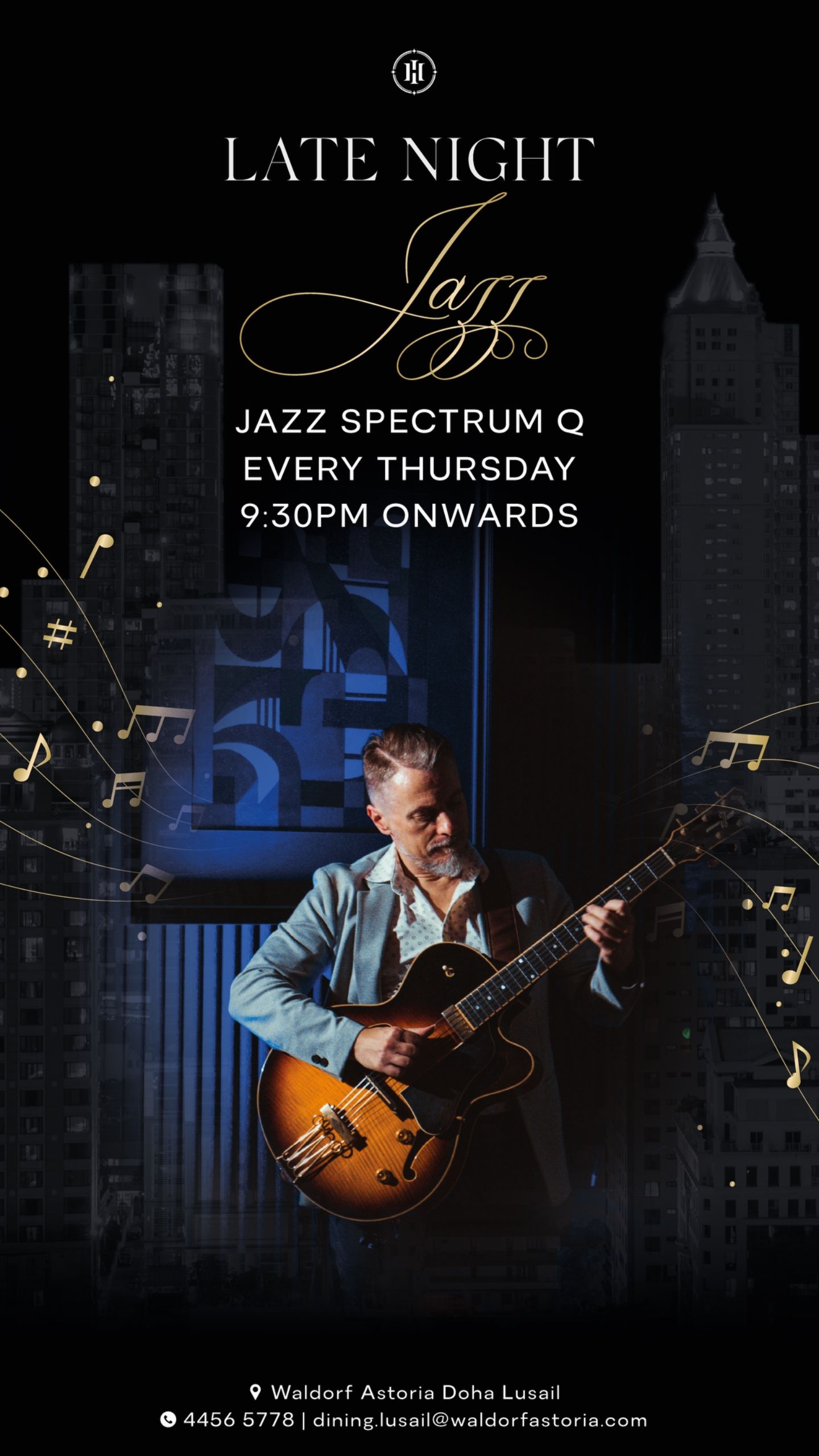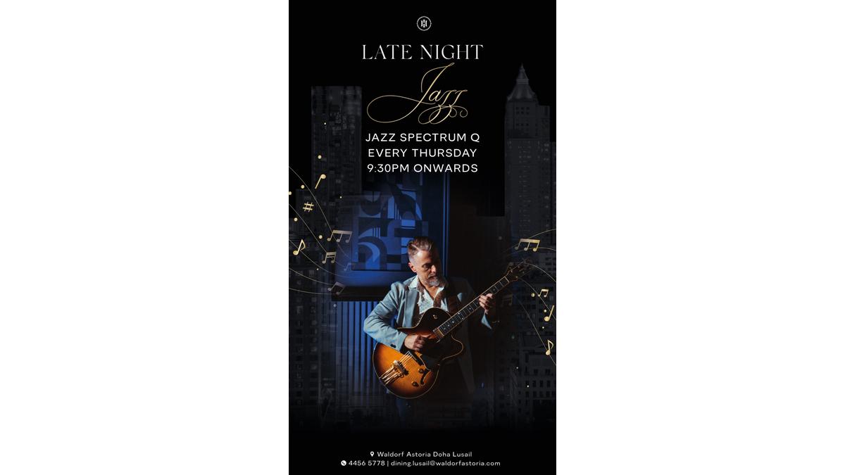 Chaque jeudi à partir de 21h30, laissez-vous emporter par l’atmosphère feutrée et envoûtante des Late Night Jazz au Waldorf Astoria Doha Lusail. Le groupe Jazz Spectrum Q y déploie tout son talent pour une expérience musicale élégante et immersive, entre improvisation raffinée et standards revisités.