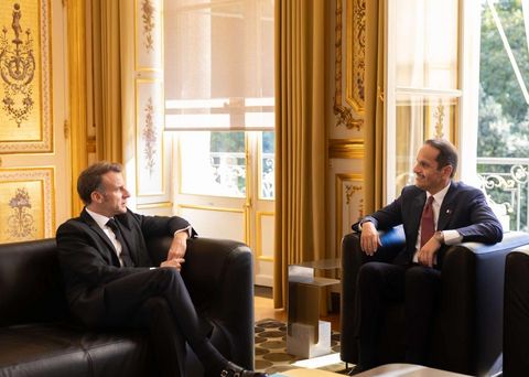 Paris : Le Président de la République française S.E. Emmanuel Macron a rencontré aujourd'hui à Paris le Premier ministre et ministre des Affaires étrangères S.E. Cheikh Mohammed bin Abdulrahman bin Jassim Al-Thani.