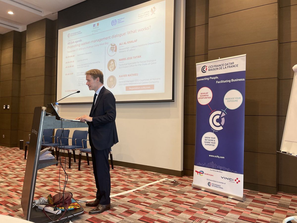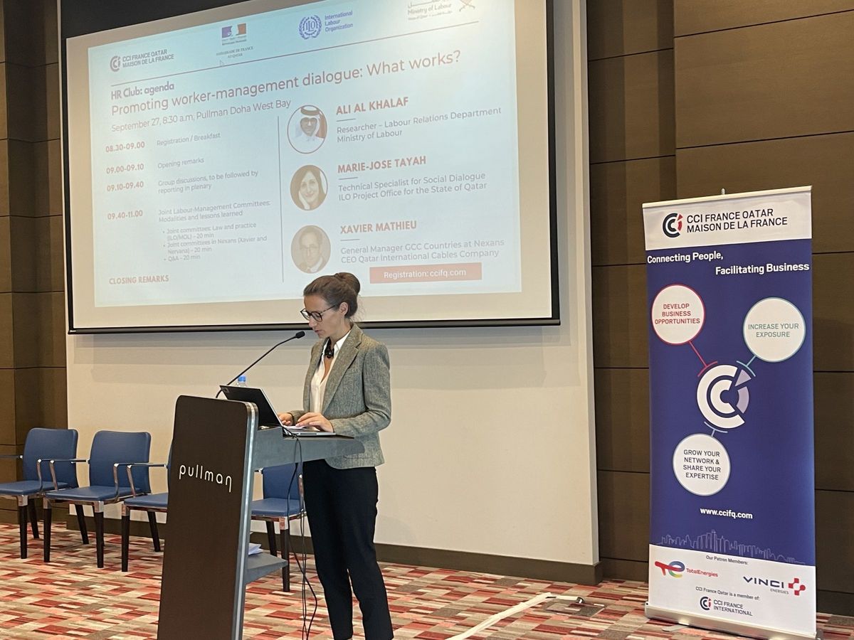 En partenariat avec l’Organisation internationale du Travail, l’Ambassade de France et le ministère du Travail, la CCI France Qatar a organisé un atelier sur les Joint Committees à l’intention de 38 dirigeants d'entreprises françaises opérant sur le marché qatarien.