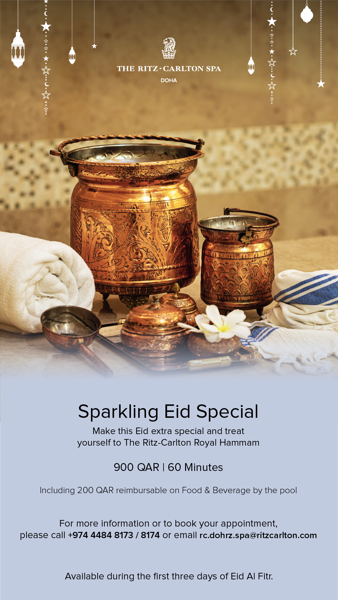 Membres Prochains événements au Ritz-Carlton Doha Le 14/04/2023 Staycation pour l'Aïd, restaurant rénové, et promotions au Spa. Voir en mode carousel Voir en mode mosaïque