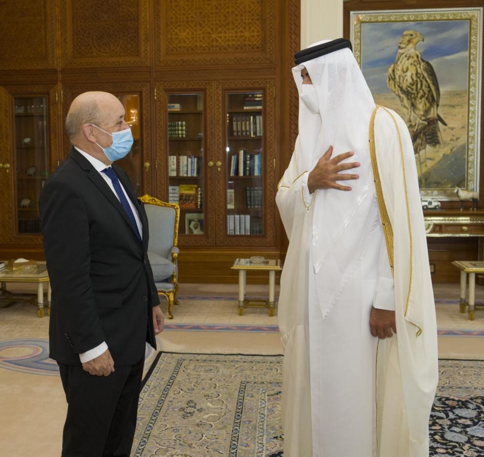 His Excellency appreciated H.E. Le Drian's current visit to Qatar, stressing its importance in developing relations between the two countries, and expressed his aspiration to develop them to broader horizons.