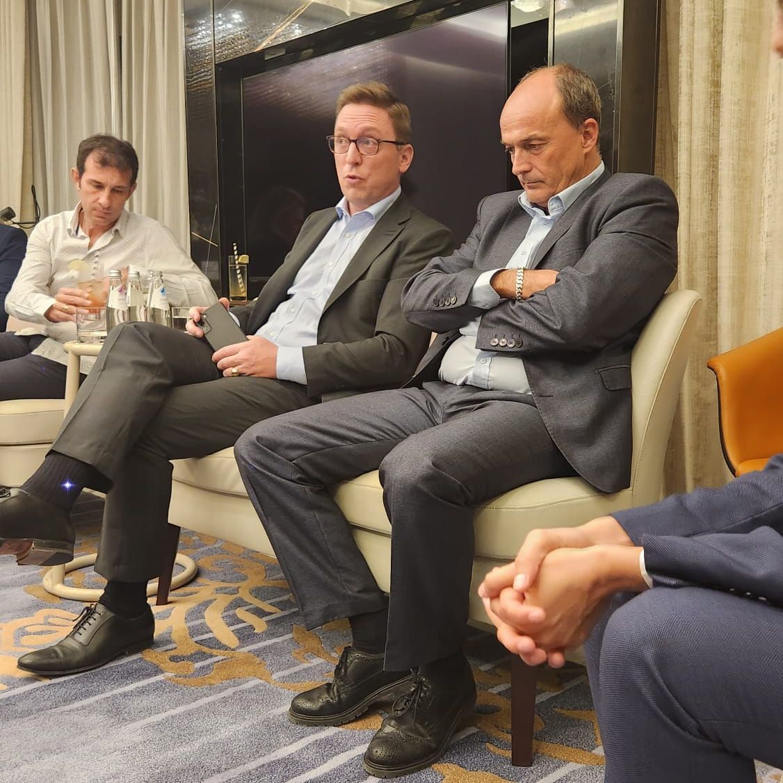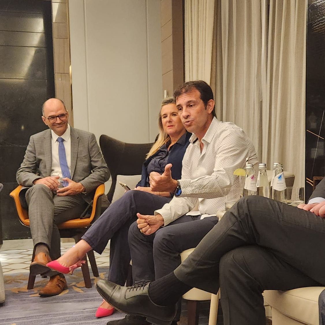 Dimanche 14 mai à l initiative de Pascale Vincent, Deuxième Conseillère de l'Ambassade France au Qatar, et Efi Frager, Cheffe du Service Economique, s’est tenue une rencontre autour de Samuel Ducroquet, Ambassadeur pour le Sport au sein du Ministère de l’Europe et des Affaires étrangères. Ce fut l’occasion pour nos entreprises membres d’échanger sur leurs projets et expériences durant la Coupe du Monde, mais aussi d’aborder les projets à venir. L'échange, qui a duré près de 3 heures, permettra de faire remonter les messages clés auprès du Ministère.