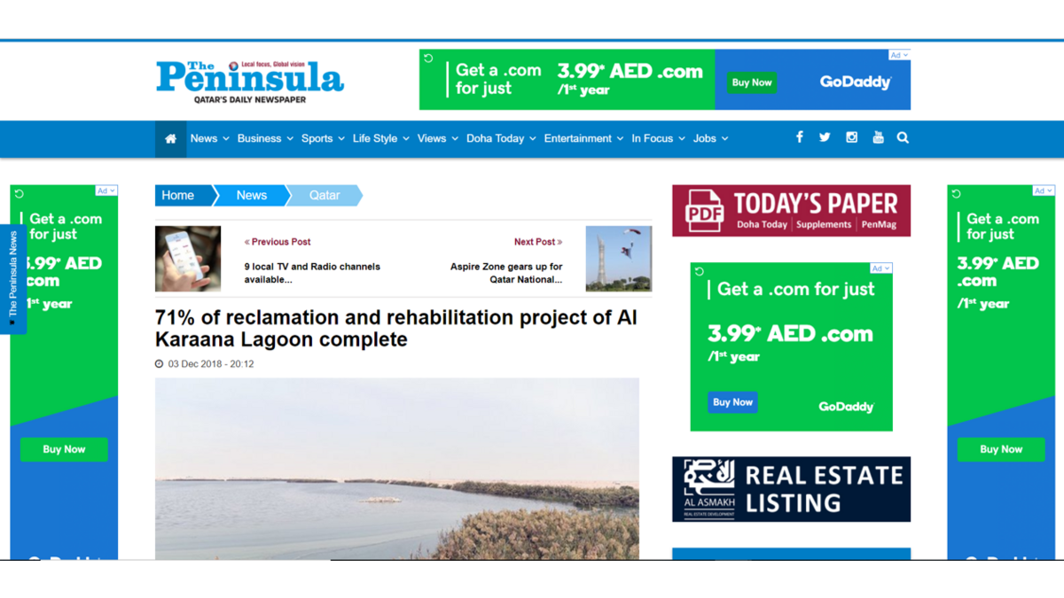 Suez à l'honneur dans la presse ! Le 07/12/2018 thepeninsulaqatar.com/article/03/12/2018/71-of-reclamation-and-rehabilitation-project-of-Al-Karaana-Lagoon-complete