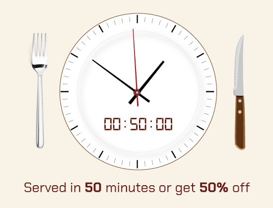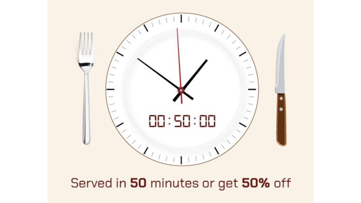 Le déjeuner sera servi en moins de 50 minutes, ou vous obtiendrez 50% de rabais sur votre repas!