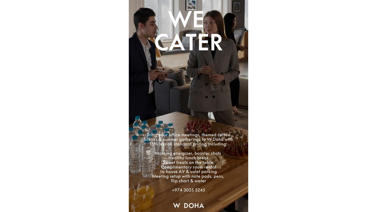 Membres Vos événements de l'été à prix préférentiel au W Doha Le 23/07/2024 Bénéficiez de 15% de remise sur vos événements professionnels au W Doha cet été Parcourez le menu