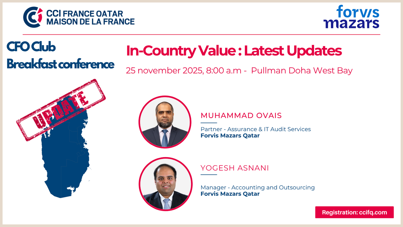 This will be a valuable opportunity to understand the recent changes, anticipate their impact, and identify the key levers to strengthen your position in the Qatari market.