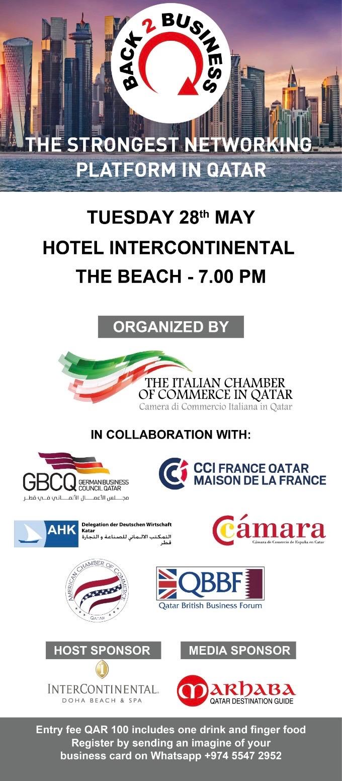 Be part of the biggest international business networking platform in Qatar organised by the Italian Chamber in Partnership with AmCham, CCIFQ, QBBF, Camara Spain, GBCQ & AHK.