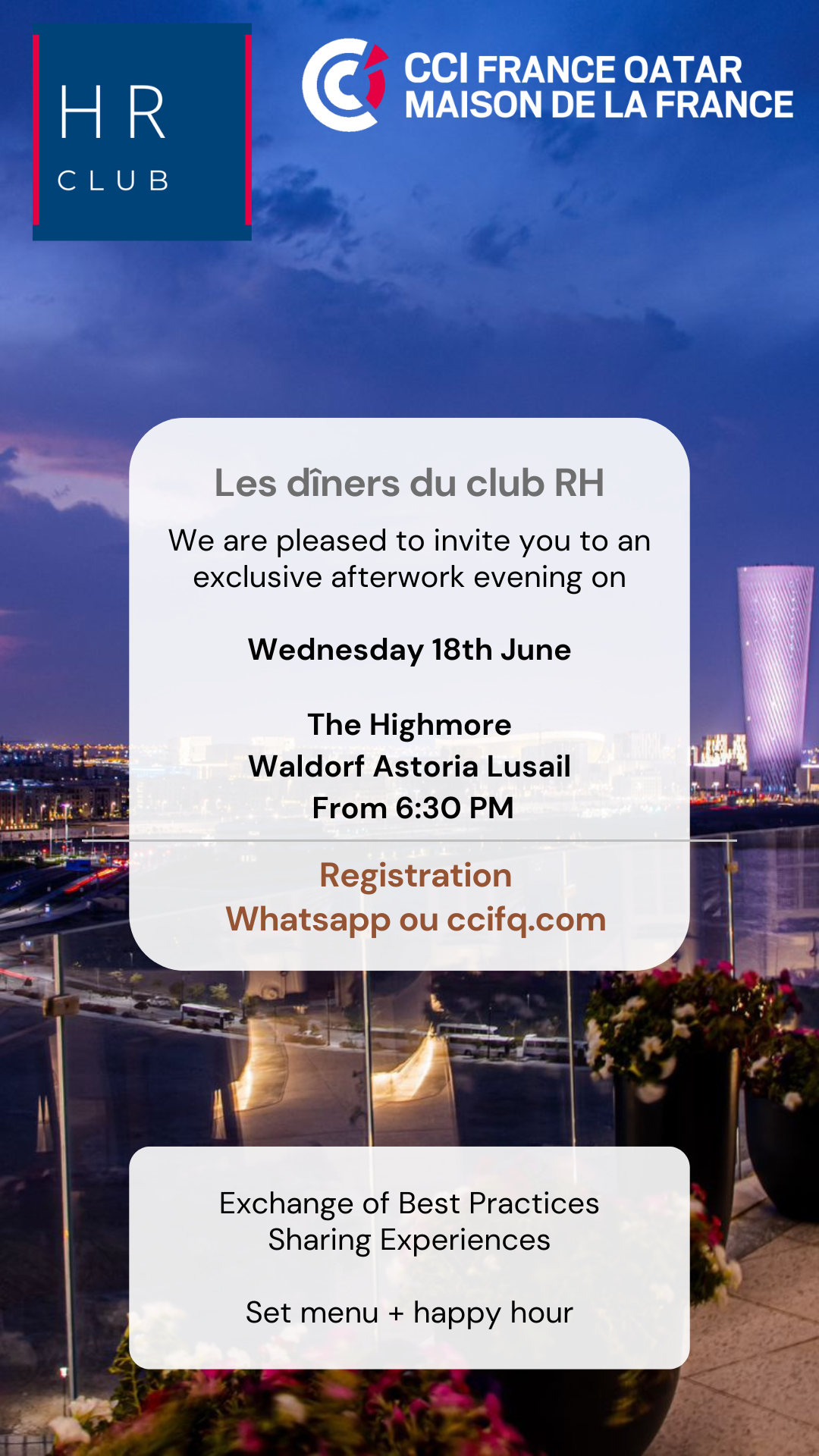 Au programme : échanges informels, partages d’expériences, set menu et happy hour dans une ambiance détendue.